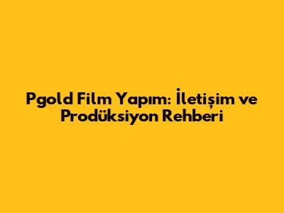 Pgold Film Yapım: İletişim Ve Prodüksiyon Rehberi