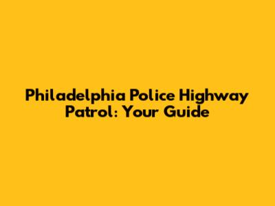 Philadelphia Police Highway Patrol: Everything You Need To Know