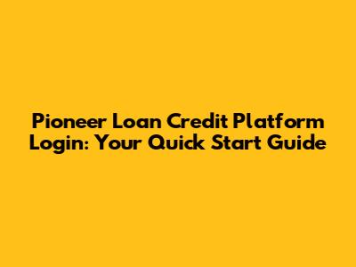 Pioneer Loan Credit Platform Login: Your Quick Start Guide