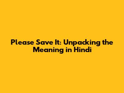 Please Save It: Hindi Meaning And Usage
