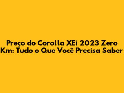 O preço base do Corolla XEi 2023 zero km é o ponto de partida para quem está planejando a compra. Este valor é definido pela Toyota e pode sofrer pequenas variações dependendo da concessionária e da região. É importante ficar atento a este preço de referência para ter uma ideia clara do investimento inicial necessário.