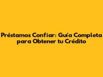 Préstamos Confiar: Guía Completa Para Obtener Tu Crédito