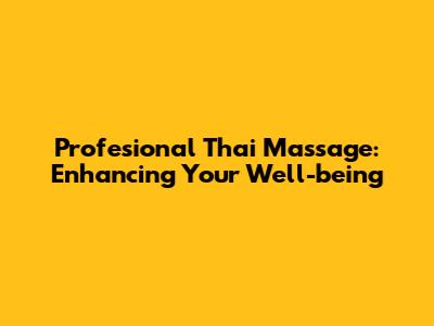 Profesional Thai Massage: Enhancing Your Well-being