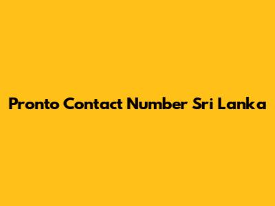 Pronto Contact Number Sri Lanka: Find It Here!