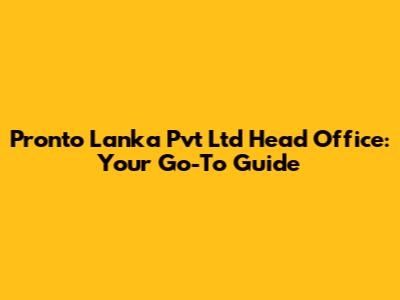 Pronto Lanka Head Office: Contact & Location Details