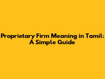 Proprietary Firm Meaning In Tamil: A Simple Guide