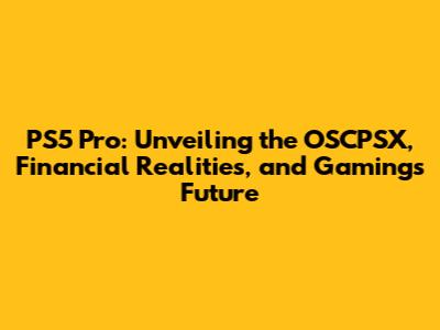 PS5 Pro: OSCPSX, Finance, And The Future Of Gaming