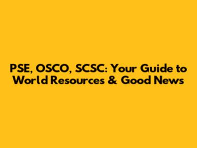 PSE, OSCO, SCSC: Your Guide To World Resources & Good News