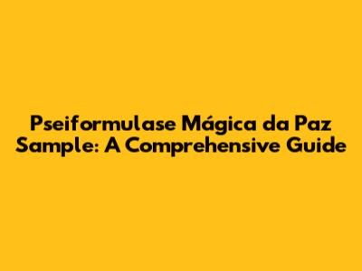 Pseiformulase Mágica Da Paz Sample: A Guide