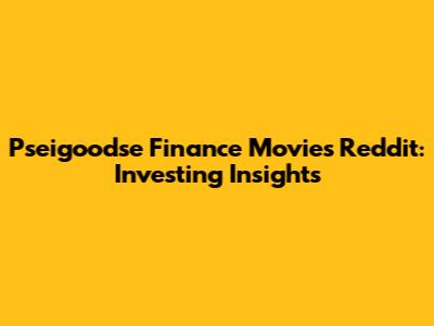 Pseigoodse Finance Movies Reddit: Investing Insights