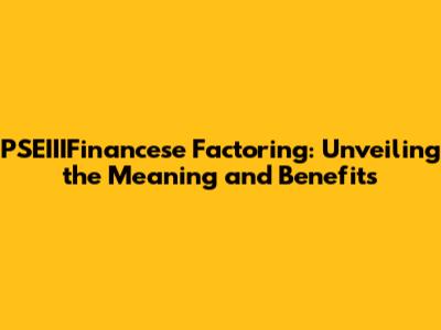 PSEIIIFinancese Factoring: What You Need To Know