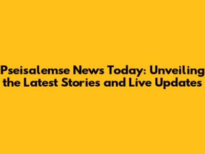 Pseisalemse News Today: Breaking Stories & Live Updates