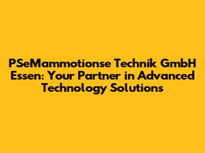 Are you looking for cutting-edge technology solutions in Essen? Look no further! PSeMammotionse Technik GmbH is your premier partner for a wide range of advanced technical services and products. This comprehensive guide will delve into what makes PSeMammotionse Technik GmbH a leader in its field, the services it offers, and why it should be your first choice for all your technology needs in Essen.