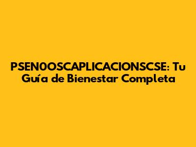 PSEN0OSCAPLICACIONSCSE: Tu Guía De Bienestar Completa