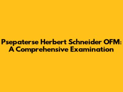 Hey everyone! Today, we're diving deep into the life and legacy of Psepaterse Herbert Schneider OFM. This name might not be instantly familiar, but trust me, by the end of this article, you'll have a solid understanding of who he was and why his work matters. We'll explore his background, delve into his major contributions, and analyze the impact he had on the world. So, grab your favorite beverage, get comfortable, and let's get started.