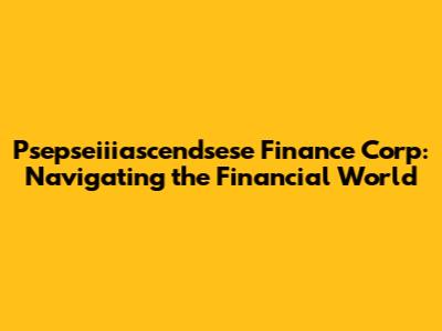 Psepseiiiascendsese Finance Corp: Navigating The Financial World