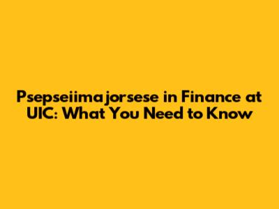 Psepseiimajorsese In Finance At UIC: What You Need To Know