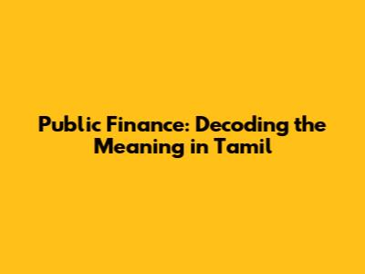 Public Finance Explained: A Tamil Guide