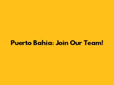 Puerto Bahia: Join Our Team!