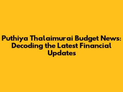 Puthiya Thalaimurai Budget News: Latest Updates & Analysis