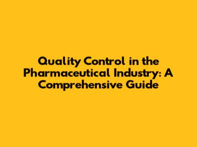 Quality Control In The Pharmaceutical Industry: A Comprehensive Guide