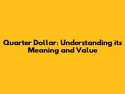 Quarter Dollar: Understanding Its Meaning And Value