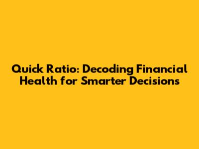 Quick Ratio: Decoding Financial Health For Smarter Decisions