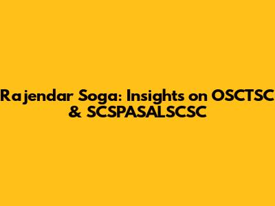 Rajendar Soga: Insights On OSCTSC & SCSPASALSCSC