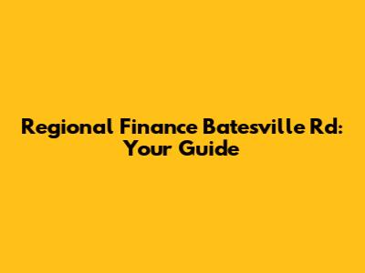 Regional Finance Batesville Rd: Your Guide