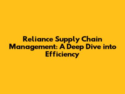 Reliance Supply Chain: A Deep Dive Into Efficiency