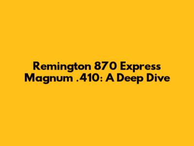 Remington 870 Express Magnum .410: A Detailed Guide