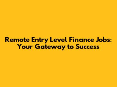 Remote Entry Level Finance Jobs: Your Gateway To Success