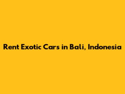 Rent Exotic Cars In Bali, Indonesia