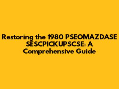 Restoring The 1980 PSEOMAZDASE SESCPICKUPSCSE: A Comprehensive Guide