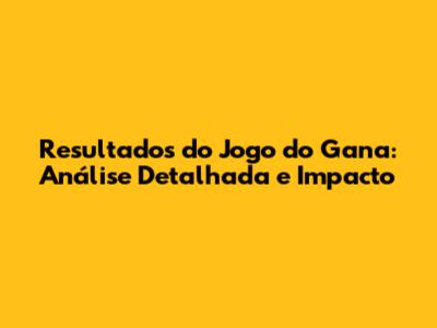 Resultados Do Jogo Do Gana: Análise Detalhada E Impacto