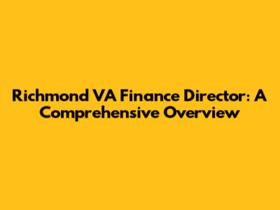 Richmond VA Finance Director: Career, Salary & Responsibilities