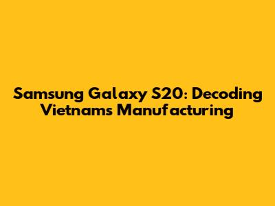 Samsung Galaxy S20: Decoding Vietnam's Manufacturing