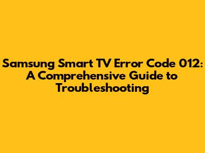 Samsung Smart TV Error Code 012: Troubleshooting Guide