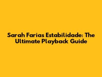 Sarah Farias Estabilidade: The Ultimate Playback Guide