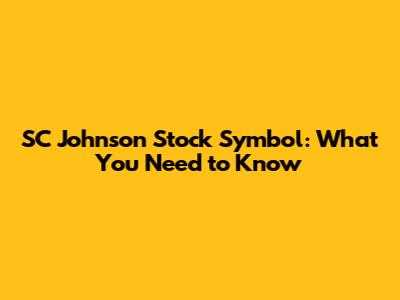SC Johnson Stock Symbol: What You Need To Know