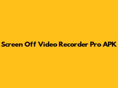 What is Screen Off Video Recorder Pro APK?