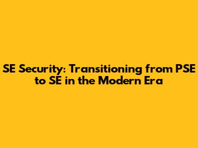SE Security: Transitioning From PSE To SE In The Modern Era