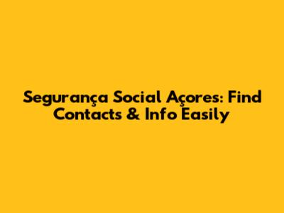 Segurança Social Açores: Find Contacts & Info Easily