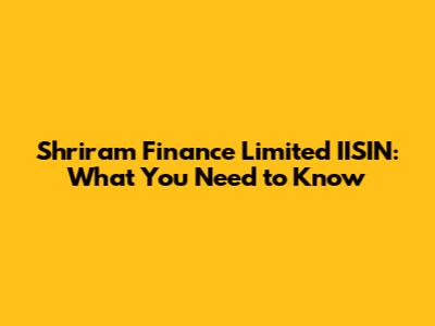 Shriram Finance Limited IISIN: What You Need To Know