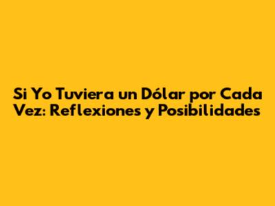 Si Yo Tuviera Un Dólar Por Cada Vez: Reflexiones Y Posibilidades
