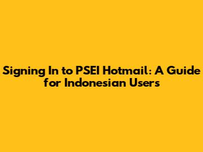 Signing In To PSEI Hotmail: A Guide For Indonesian Users