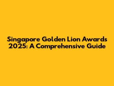 Singapore Golden Lion Awards 2025: A Comprehensive Guide