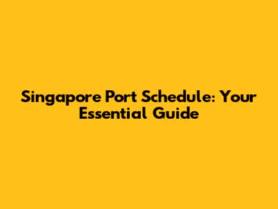 Singapore Port Schedule: Your Essential Guide