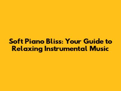 Soft Piano Bliss: Your Guide To Relaxing Instrumental Music