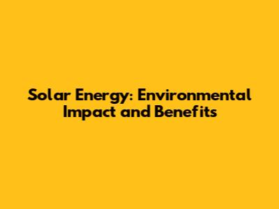 Solar Energy: Environmental Impact And Benefits